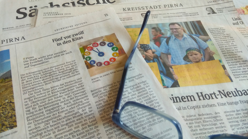 „Die Schlagzeilen sind alarmierend.“ – so beginnt der Artikel der Sächsischen Zeitung und verweist dabei auf den Erziehermangel in der AWO-Kita Schlängelbachweg und im DRK-Kindergarten Regenbogen in Graupa, in denen die Eltern gebeten wurden, die Erziehungszeiten ihrer Kinder zu reduzieren.