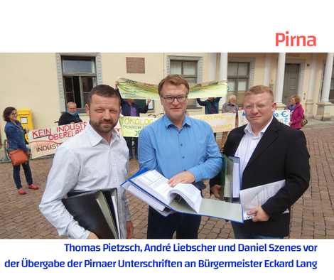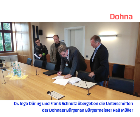 Ein knappes Jahr nach Start der Bürgerbegehren in Pirna, Heidenau und Dohna haben wir die in den Bürgerbegehren gesammelten knapp 6.000 Unterschriften am Dienstag, 10.09.2019 an die Stadtverwaltungen übergeben. Die Dresdner Morgenpost berichtet dazu frei verfügbar auf ihrer Internetseite TAG24, die Sächsische Zeitung und die Dresdner Neueste Nachrichten leider jeweils nur für Abonennten.