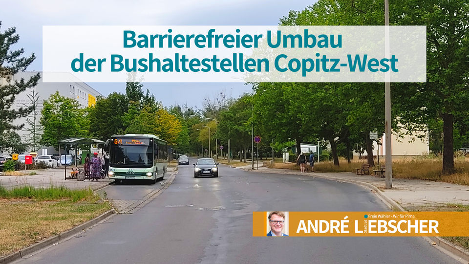 Am Montag, 03.08.2020 startete das, was der Stadtentwicklungsausschuss in seiner 3. Sitzung am 07.11.2019 beschlossen hatte: Die Bushaltestellen „Copitz-West“ auf der Schillerstraße werden barrierefrei ausgebaut.