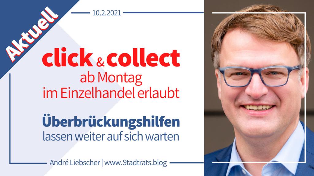 Ab kommenden Montag, 15.2.2021, dürfen Händler in Sachsen den click & collect-Service anbieten, so Wirtschaftsminister Dulig. Das bedeutet, die von der Schließung betroffenen Geschäfte dürfen zur Abholung von bestellter Ware und unter Einhaltung besonderer Hygienevorschriften öffnen.