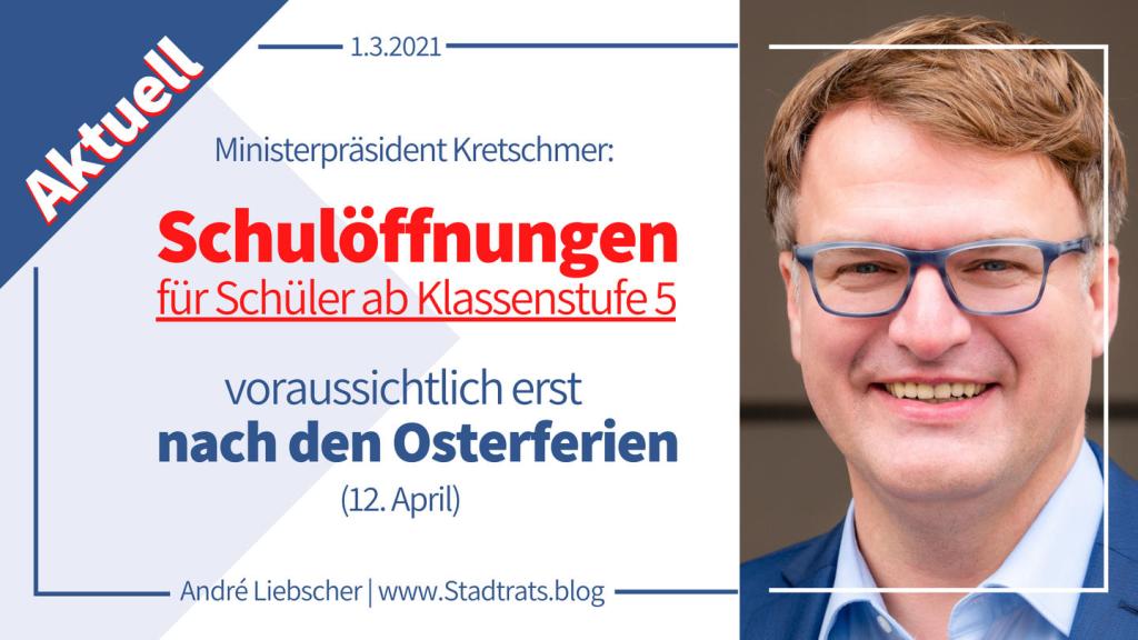 Heute Vormittag sagte Ministerprasident Kretschmer, für weiterführende Schulen sehe er „derzeit jetzt“ keine Öffnungsmöglichkeit. Eine Chance dafür gebe es erst dann, wenn man mit den Schnelltest-Konzepten weiterkomme. Das sei aus seiner Sicht erst nach den Osterferien der Fall.