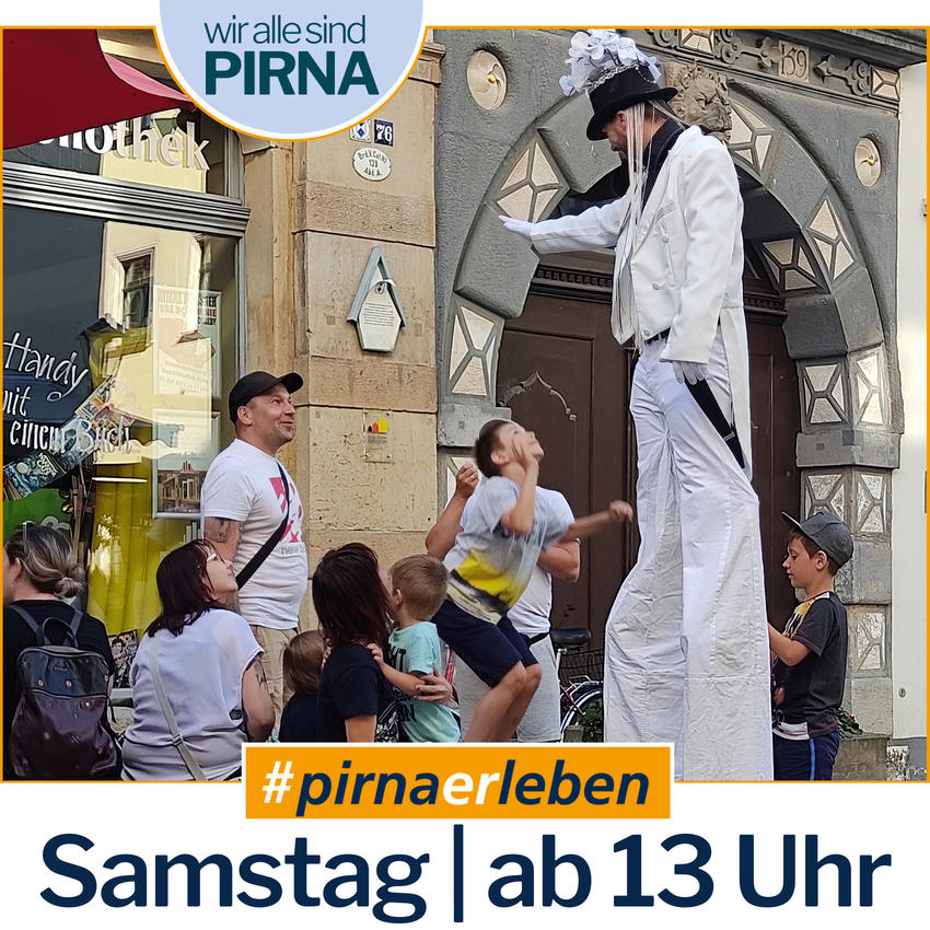 Am Samstag, 25. September 2021 steht in der Pirnaer Altstadt noch einmal der Aktionssommer #pirnaerleben auf dem Programm. Von 14 Uhr bis 18 Uhr zeigen Künstler ihre Darbietungen auf verschiedenen Kulturinseln in den Gassen und bereichern damit den verkaufslangen Samstag.