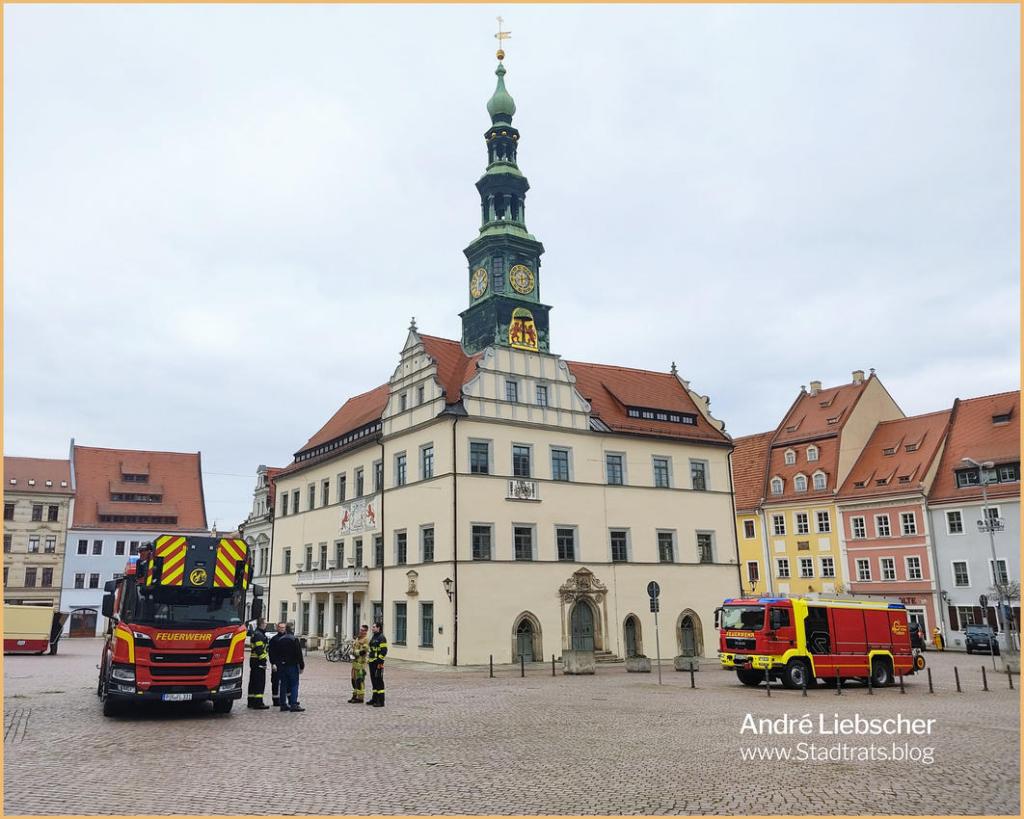 Im Ergebnis wissen wir nun, dass die Feuerwehr mehr Platz zum rangieren hat, wenn die zur Durchfahrtssperrung vorgesehene Pollerreihe nicht auf Höhe zwischen Rathaus und Kirchgasse, sondern weiter unten auf Höhe Brunnen ‚Pirnaer Marktschiff‘ installiert wird.