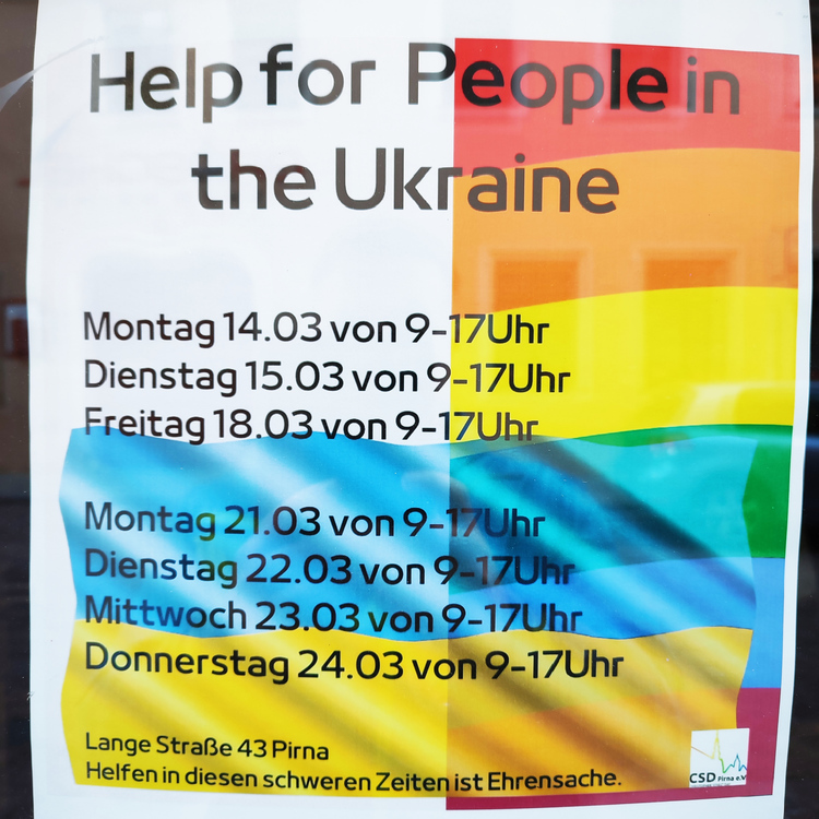 Um die Geflüchteten mit den vor Ort aktuell Benötigten versorgen zu können, werden nun Spenden gezielt angefragt und gesammelt. Der CSD Pirna e.V. steht dafür im direkten Kontakt mit Helfern an den Grenzen zur Ukraine und in der Ukraine selbst.