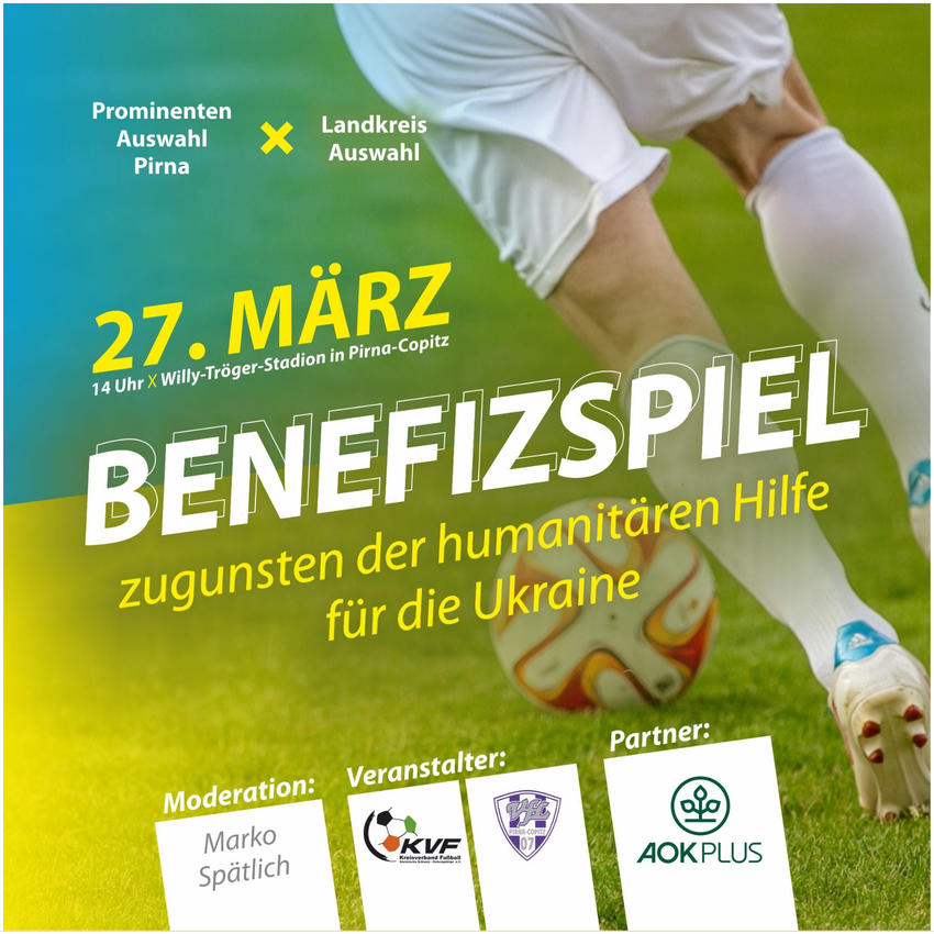 Du suchst noch einen Tipp für dein Wochenende? Komm mit deiner Familie und deinen Freunden am Sonntag, 27. März 2022, zum großen Fußballfest ins Willy-Tröger-Stadion! Dort tritt ab 14 Uhr in einem Benefizspiel zugunsten der Ukraine-Hilfe ein Pirna-Team gegen eine Landkreis-Auswahl an.