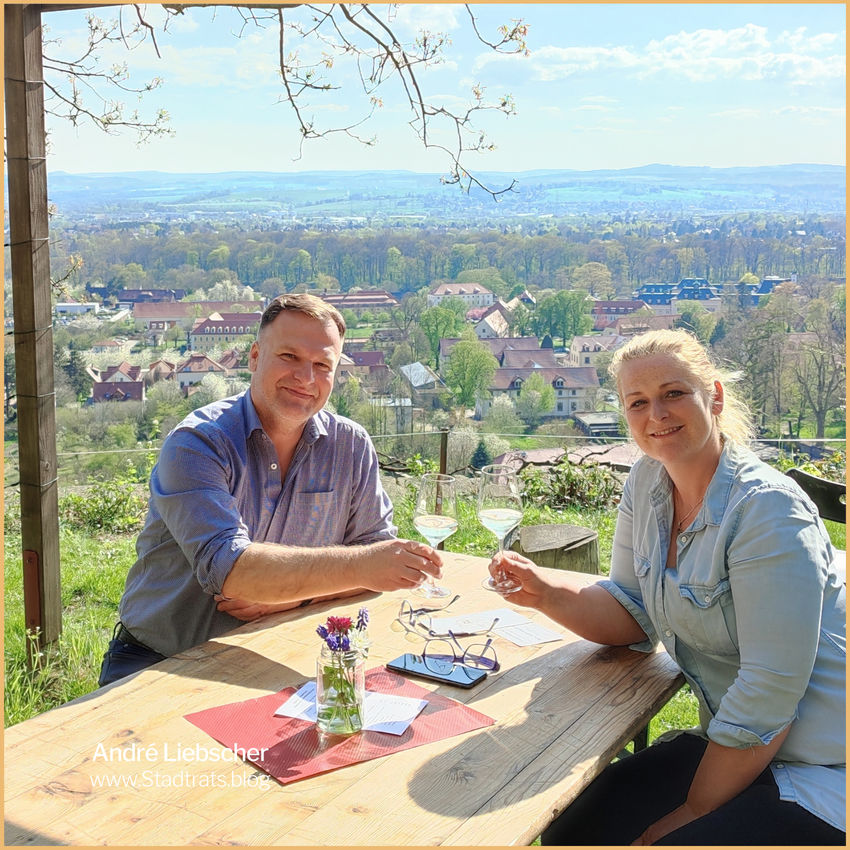 An diesem Wochenende bot sich eine gute Gelegenheit: Die 25. Sächsische Weinkönigin 2012, Katja Riedel und Erich Dollinger luden anlässlich des Deutschen WeinWanderWochenendes zum Weinausschank auf den Leitenweg am 4-eckigen Wächterhaus oberhalb von Schloß Pillnitz.