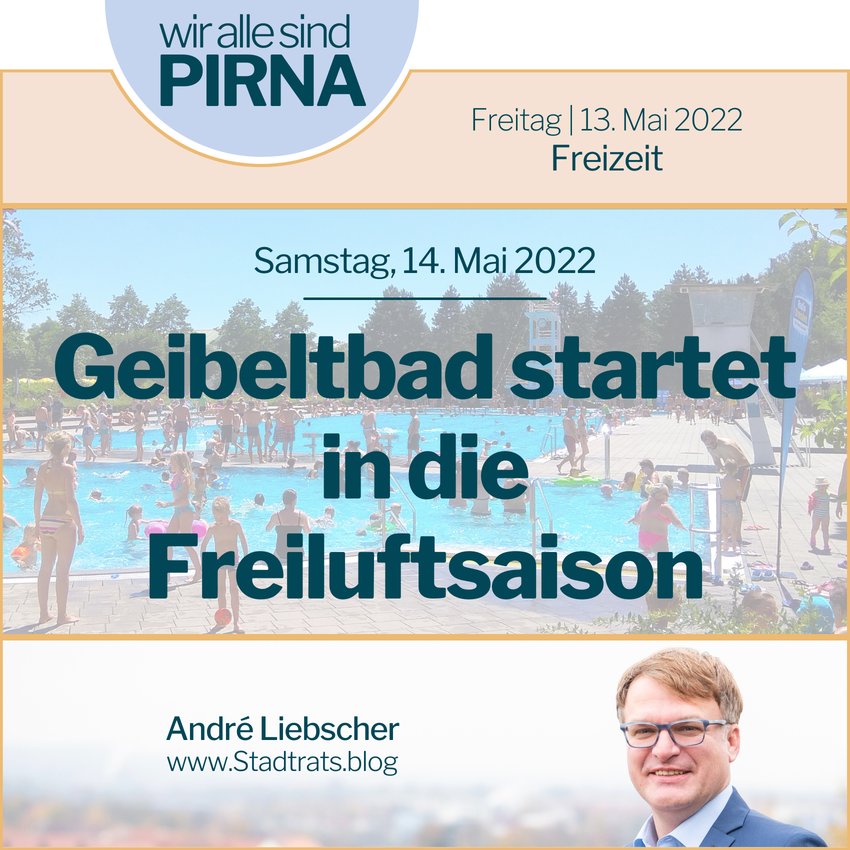 Das Pirnaer Geibeltbad startet am Samstag, 14. Mai 2022, ab 10 Uhr in die Freiluftsaison. Auch die Halle und Sauna öffnen nach der jährlichen Grundreinigung planmäßig.