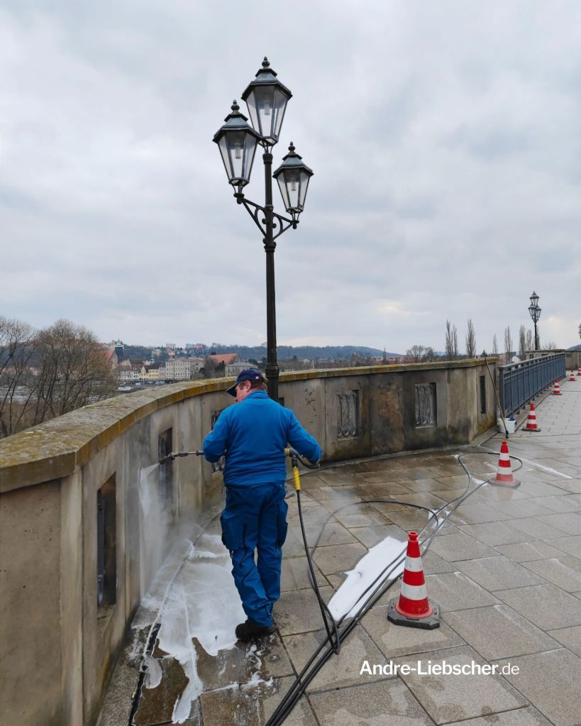 Jedoch: Auch mit entsprechender chemischer Vorbehandlung und Wasserhochdruck mit speziellen Reinigungsmitteln lässt sich die Farbe aus dem Sandstein leider nicht vollständig entfernen, so das niederschmetternde Fazit des Spezialisten der Reinigungsfirma.